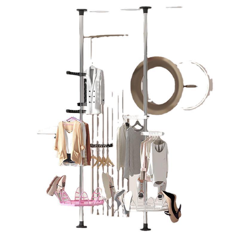 挂衣架落地式 架子 卧室晾衣架伸缩免打孔家用顶天立地阳台晾衣杆鞋