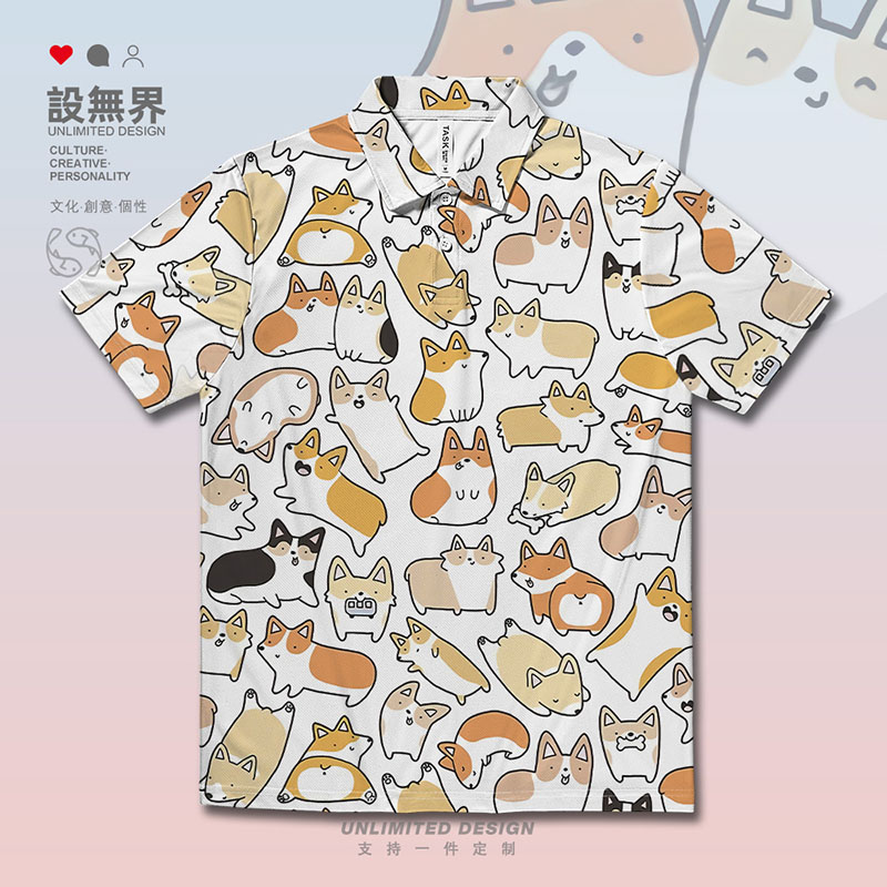 可爱小短腿柯基萌宠趣味碎花铲屎官速干polo衫 无界 男女T恤000C设
