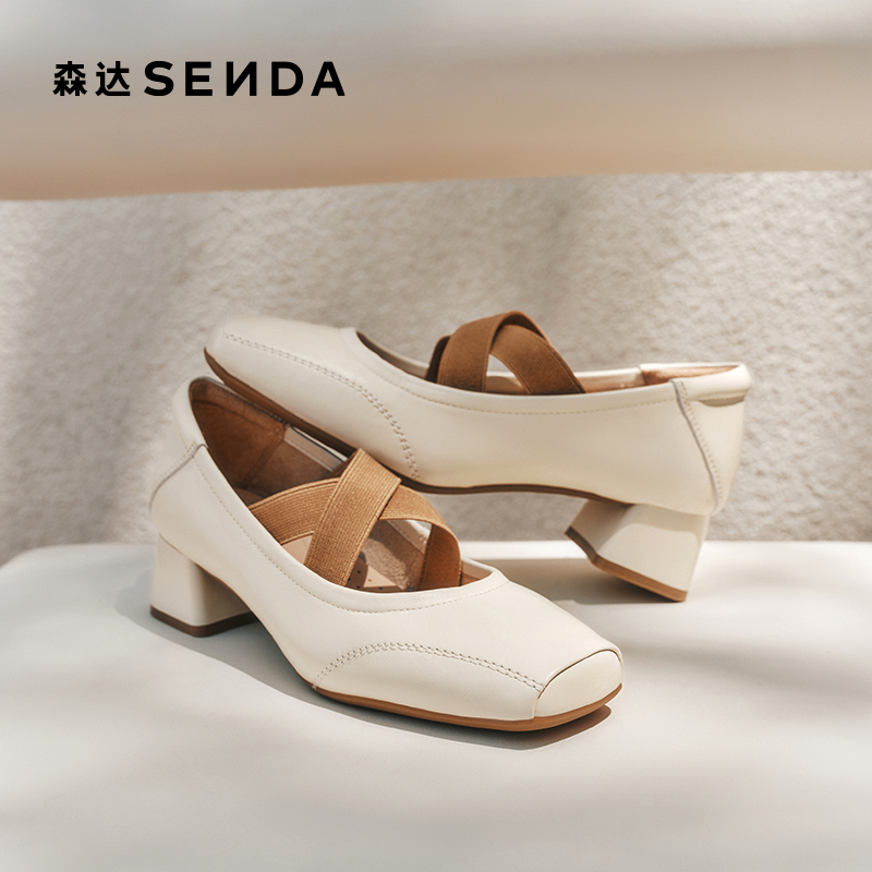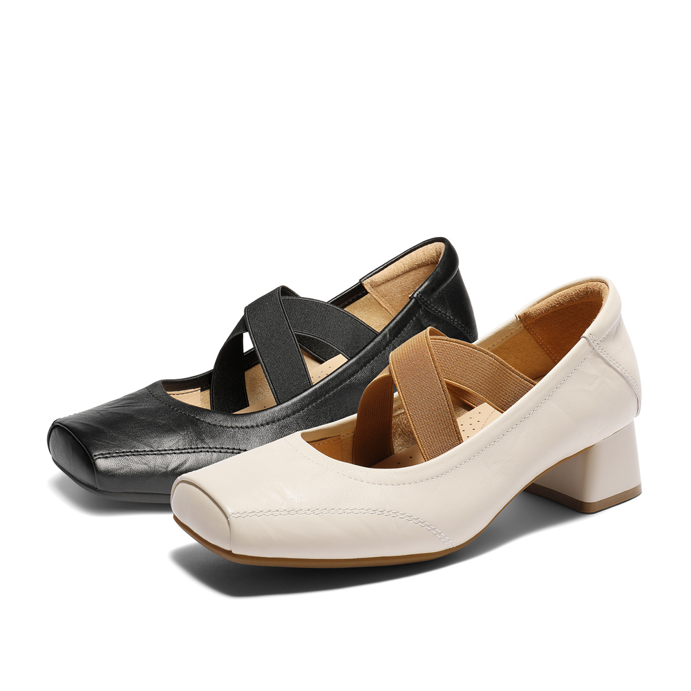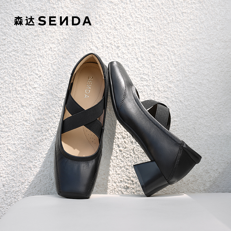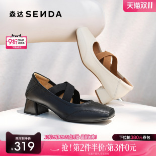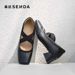 真皮浅口单鞋 新款 子E1T1DCQ5预 女2025秋季 百丽复古粗高跟玛丽珍鞋