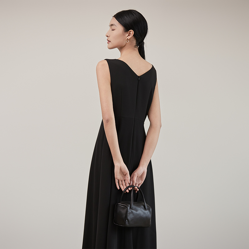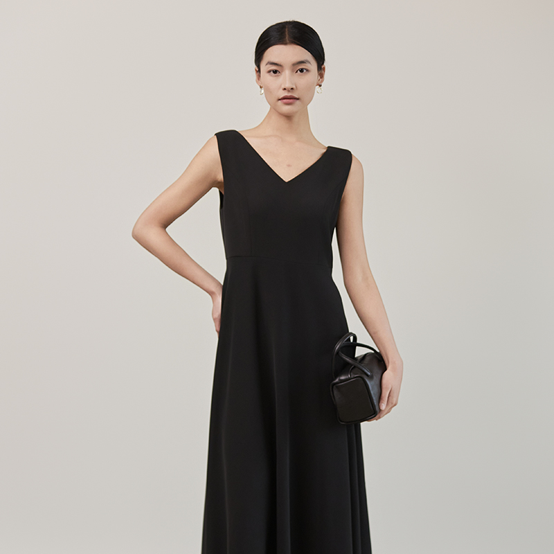 高级感 a字裙气质修身 黑色法式 赫本风V领连衣裙收腰显瘦长款