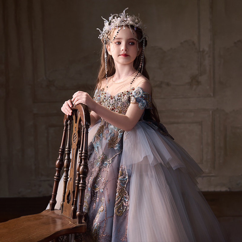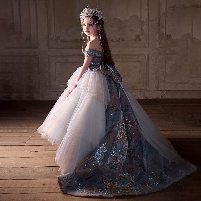 女童礼服复古高端重工定制公主裙生日花童模特走秀主持钢琴演出服