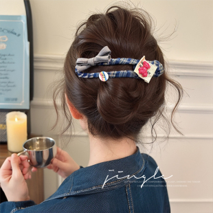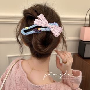 甜美撞色蝴蝶结鸭嘴夹抓夹女后脑勺高级感发夹2025新款 一字夹头饰