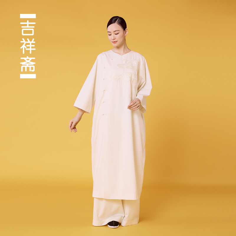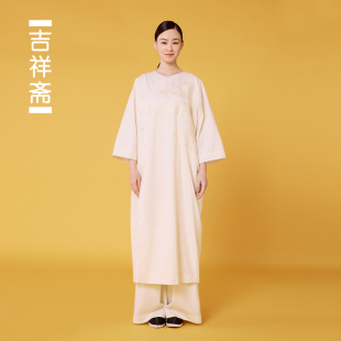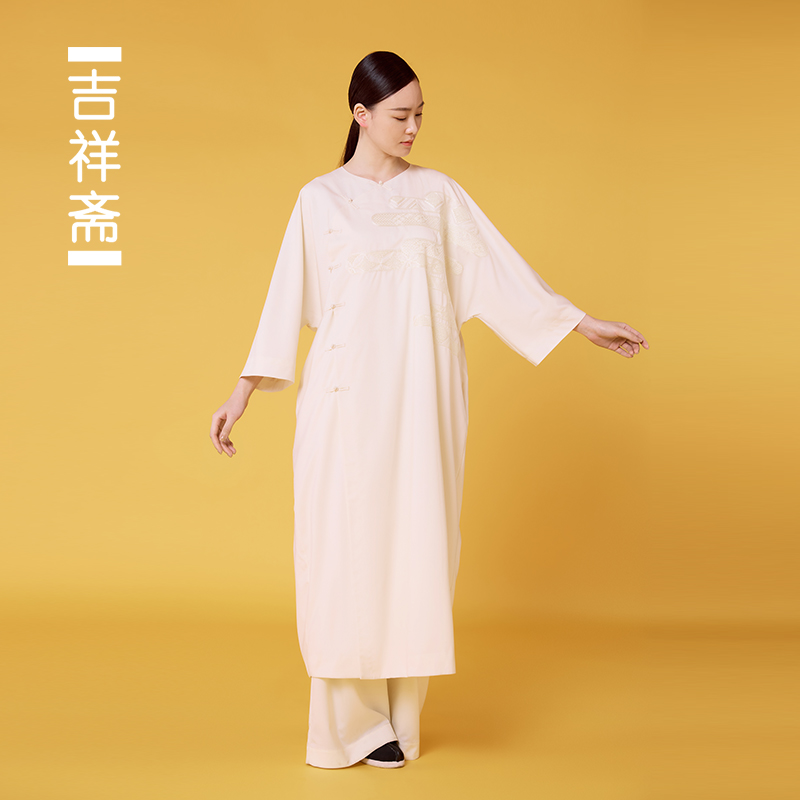 绵羊毛混纺刺绣云纹国风中式 玉溪烟长衫 圆领斜襟长衫 吉祥斋