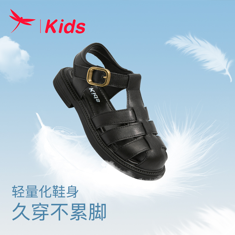夏款 红蜻蜓真皮女童鞋 新款 2025夏季 女孩中大童罗马 子儿童包头凉鞋