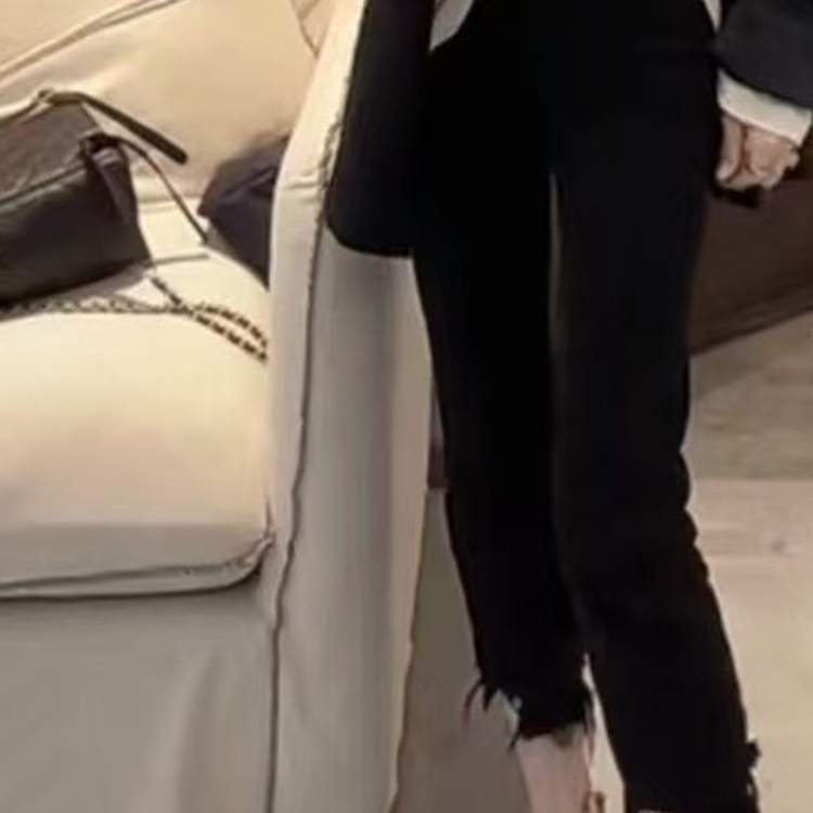 女2025春季 直筒裤 新款 修身 小个子设计感高腰毛边九分长裤 牛仔裤