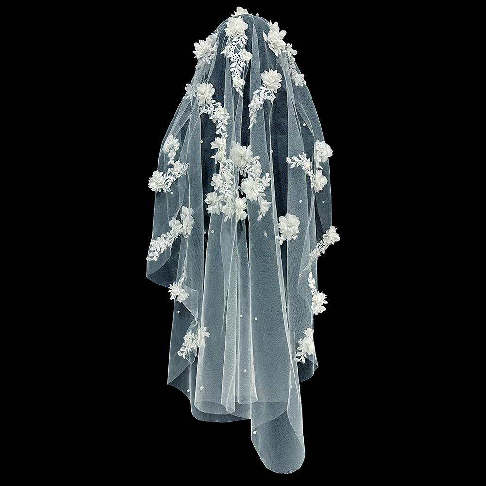 新娘结婚主婚纱头纱超仙森系珍珠花朵头纱婚礼拍照道具春季 新品