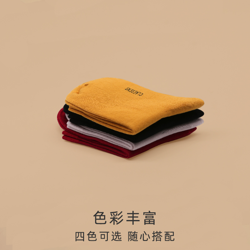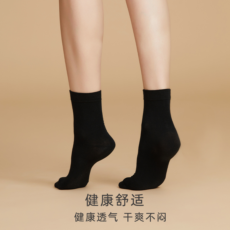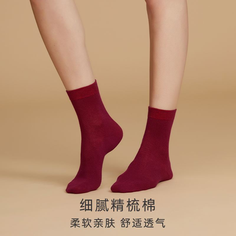 Claesens中筒袜子女士秋冬运动长袜棉质纯色防臭精梳棉袜子3双