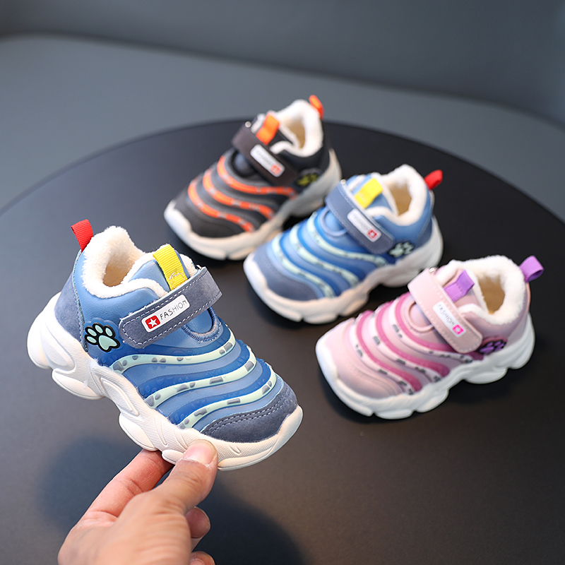 子新款 春秋冬季 男童女童毛毛虫儿童鞋 皮面加绒二棉童鞋 宝宝棉鞋