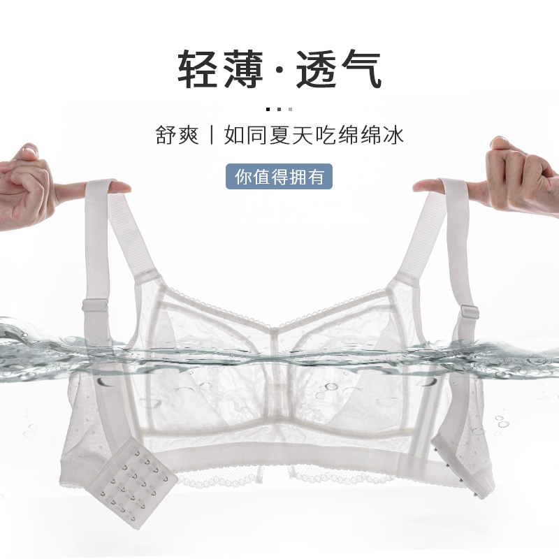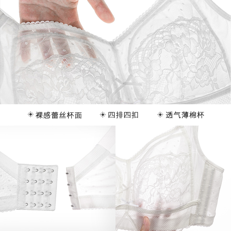 莱蜜薇大码 内衣女大胸显小防下垂收副乳文胸无钢圈白色 性感超薄款