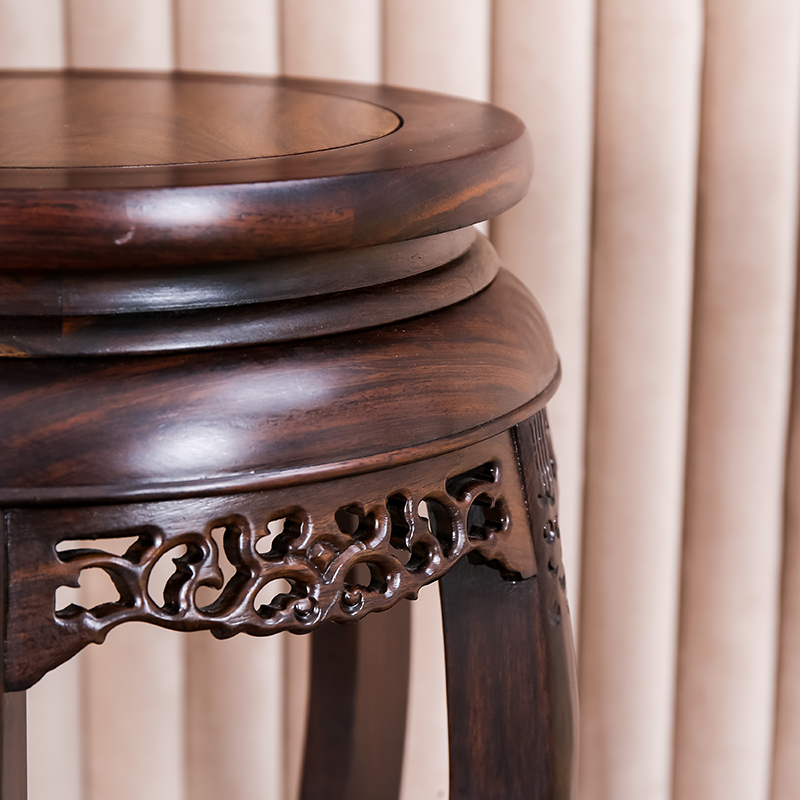 实木圆形客厅落地花架非洲黑檀木雕花瓶花盆石头底座摆件红木花几