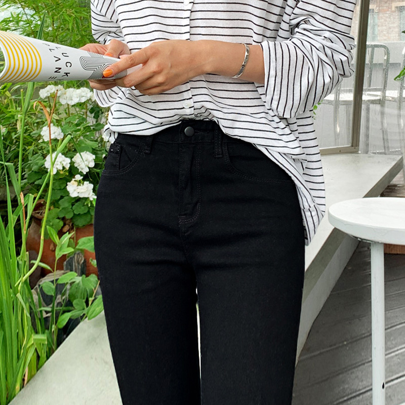显瘦九分2025秋冬加绒高腰紧身打底铅笔长裤 黑色小脚牛仔裤 女修身