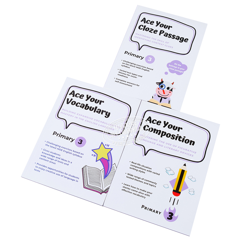 单词词汇Vocabulary 小学三年级英语学习3册套装 完形填空Cloze 写作作文 寒假暑假作业课外? 新加坡原版 有答案适合自学 教辅