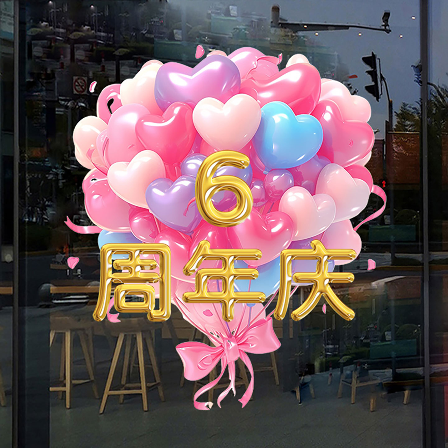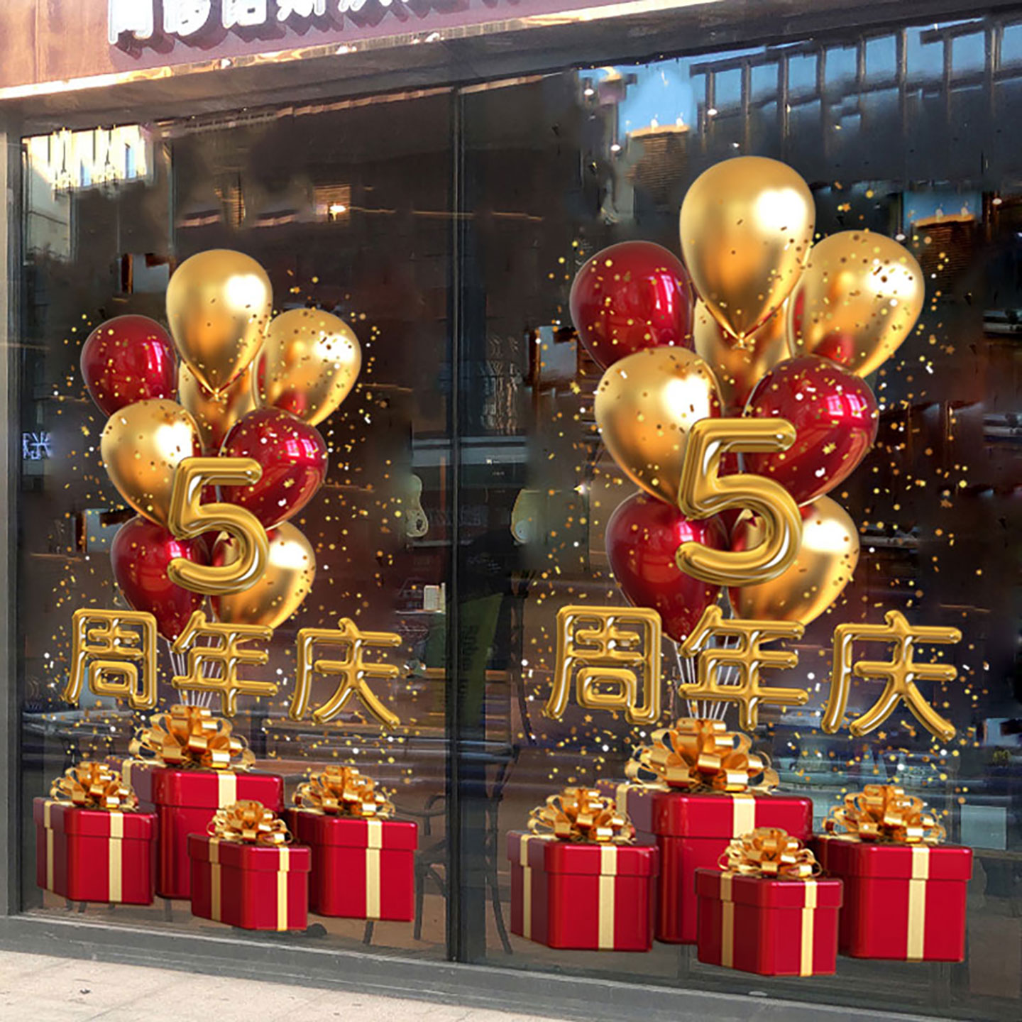 公司商场周年庆橱窗布置静电贴纸店铺玻璃门店庆装 贴画 饰窗花促销