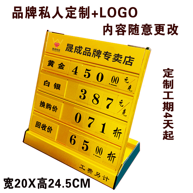 今日金价牌金价展示牌珠宝店柜台黄金价格公示牌表银行L型桌摆白银价黄金足银铂金K钯金9999摆放回收价格牌