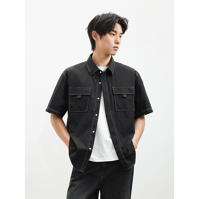 短袖 工装 衬衫 男翻领衬衫 G25D232001 GXG男装 日系T恤 25年夏季