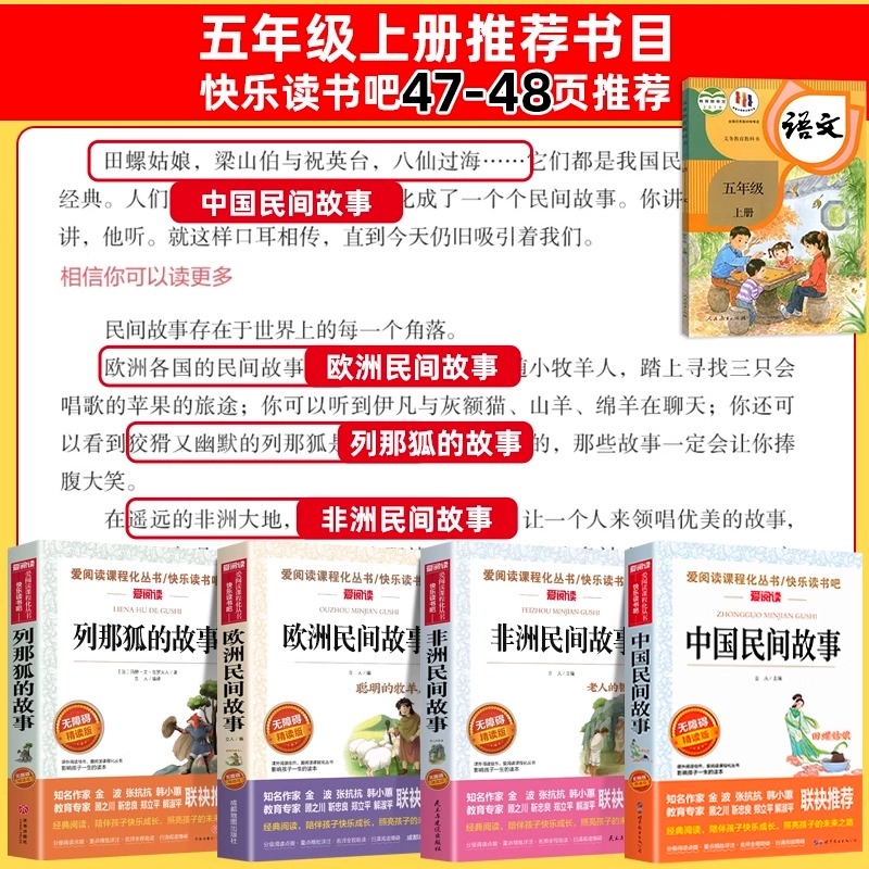 课外书欧洲非洲列那狐 完整版 故事正版 书目课外阅读书籍老师推荐 三味 田螺快乐读书吧5上经典 全套4册中国民间故事五年级上册必读