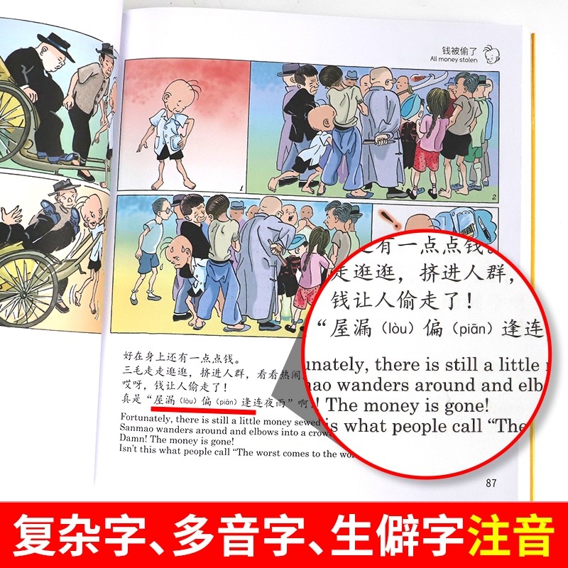 三毛流浪记三毛从军记外传张乐平漫画双语彩色漫画学生读本老师推荐 社 连环画出版