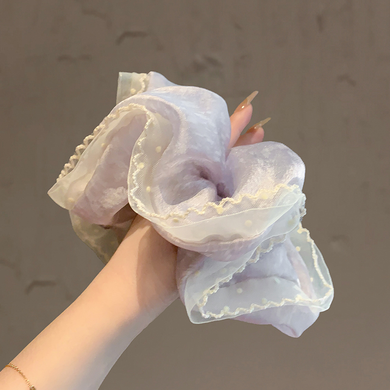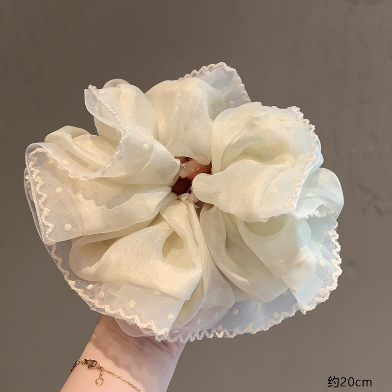 韩系奶白色印花方巾大肠发圈女2025新款 甜美头圈发绳丸子头发饰品