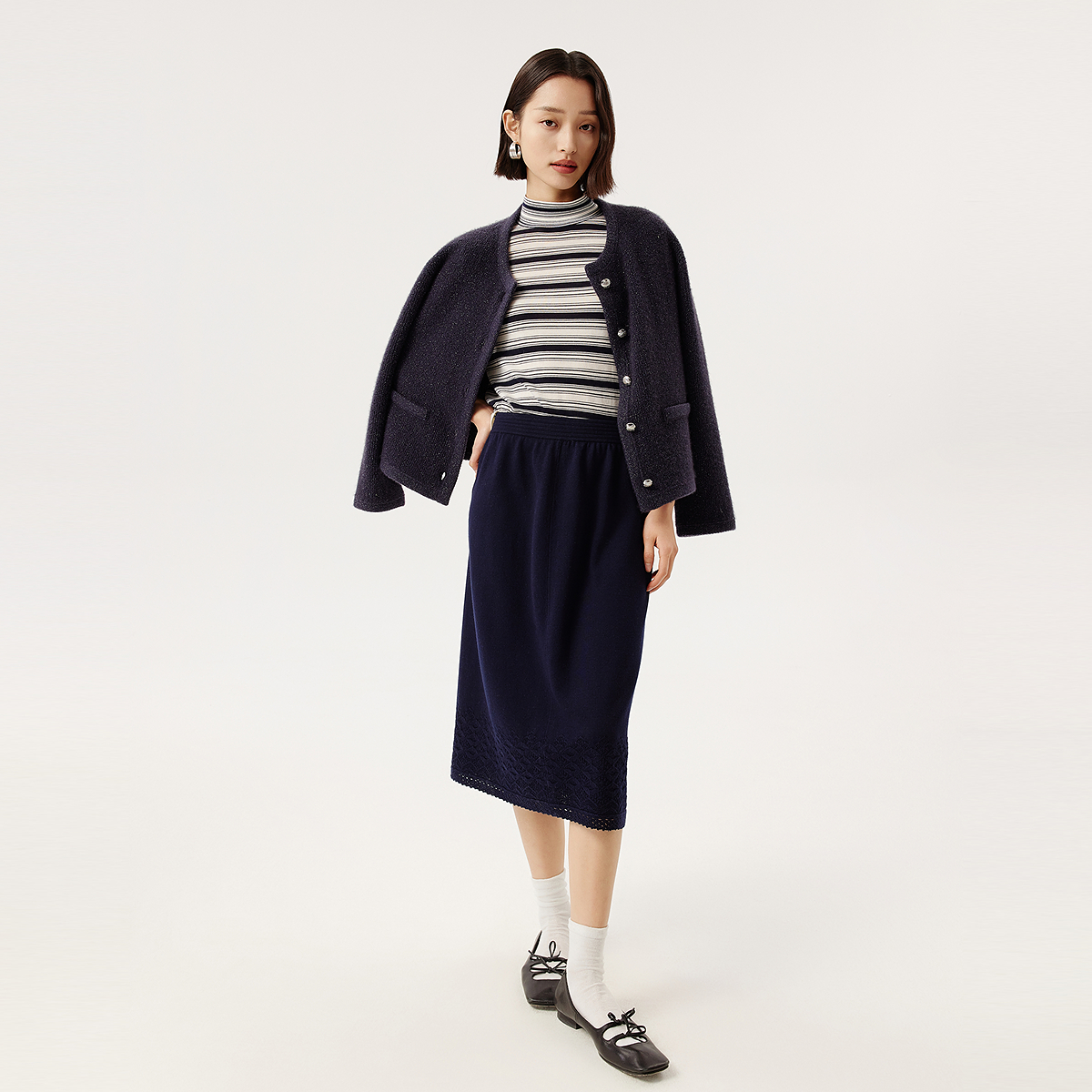 MOCO半身裙2025秋新品 系列 绵羊毛精纺工字褶高腰MBE3SKT030