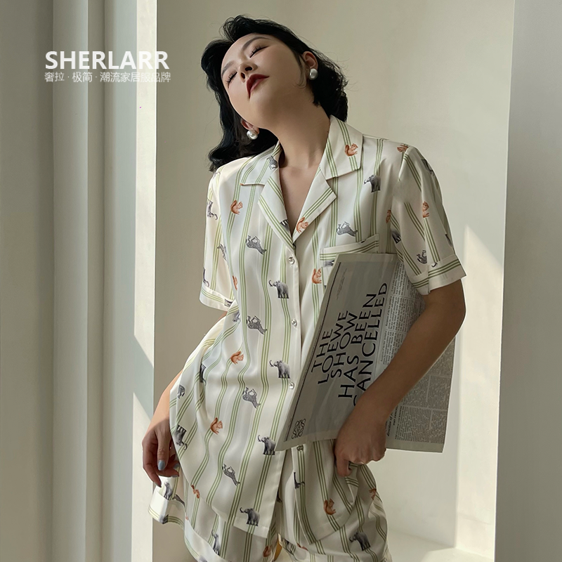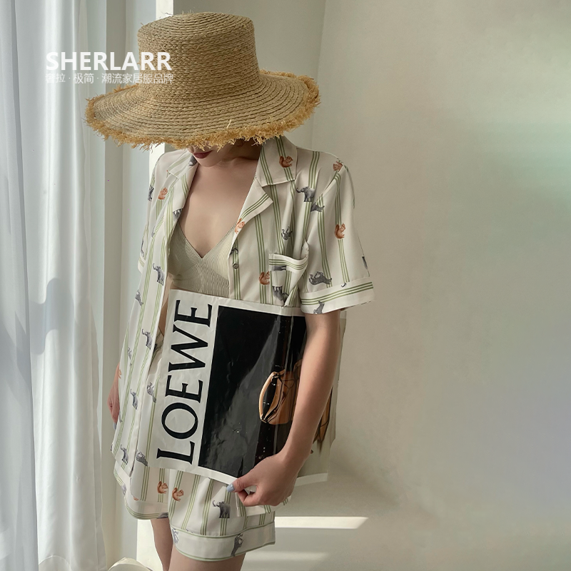 25夏日清新韩版 家居服 睡衣二件套女士高颜值可爱动物印花冰丝短袖