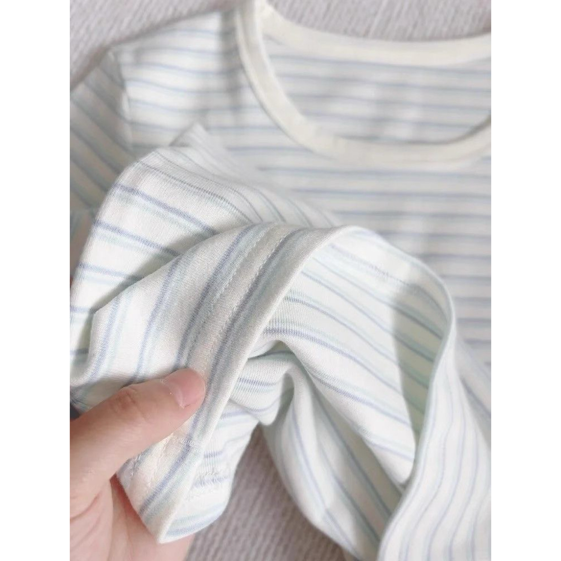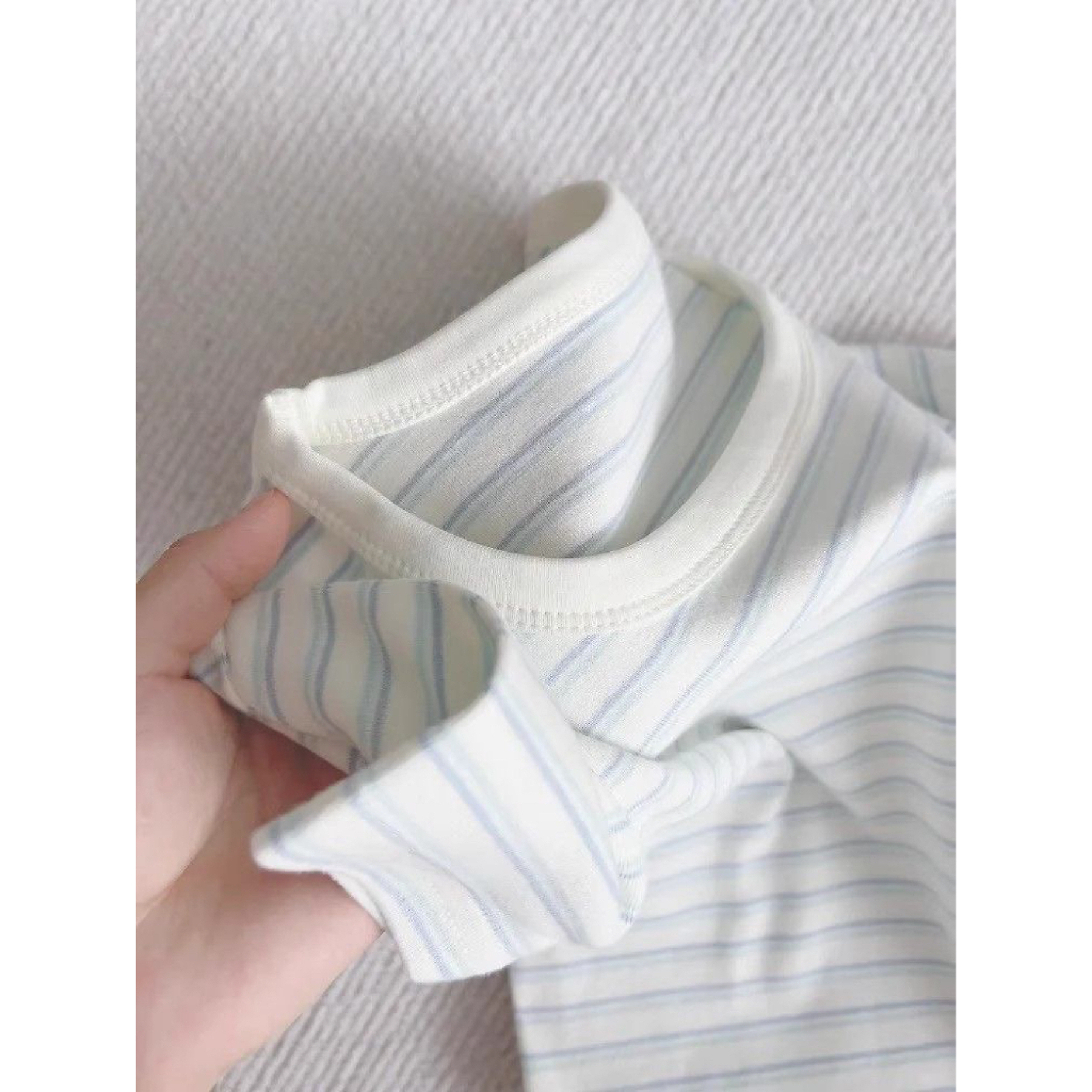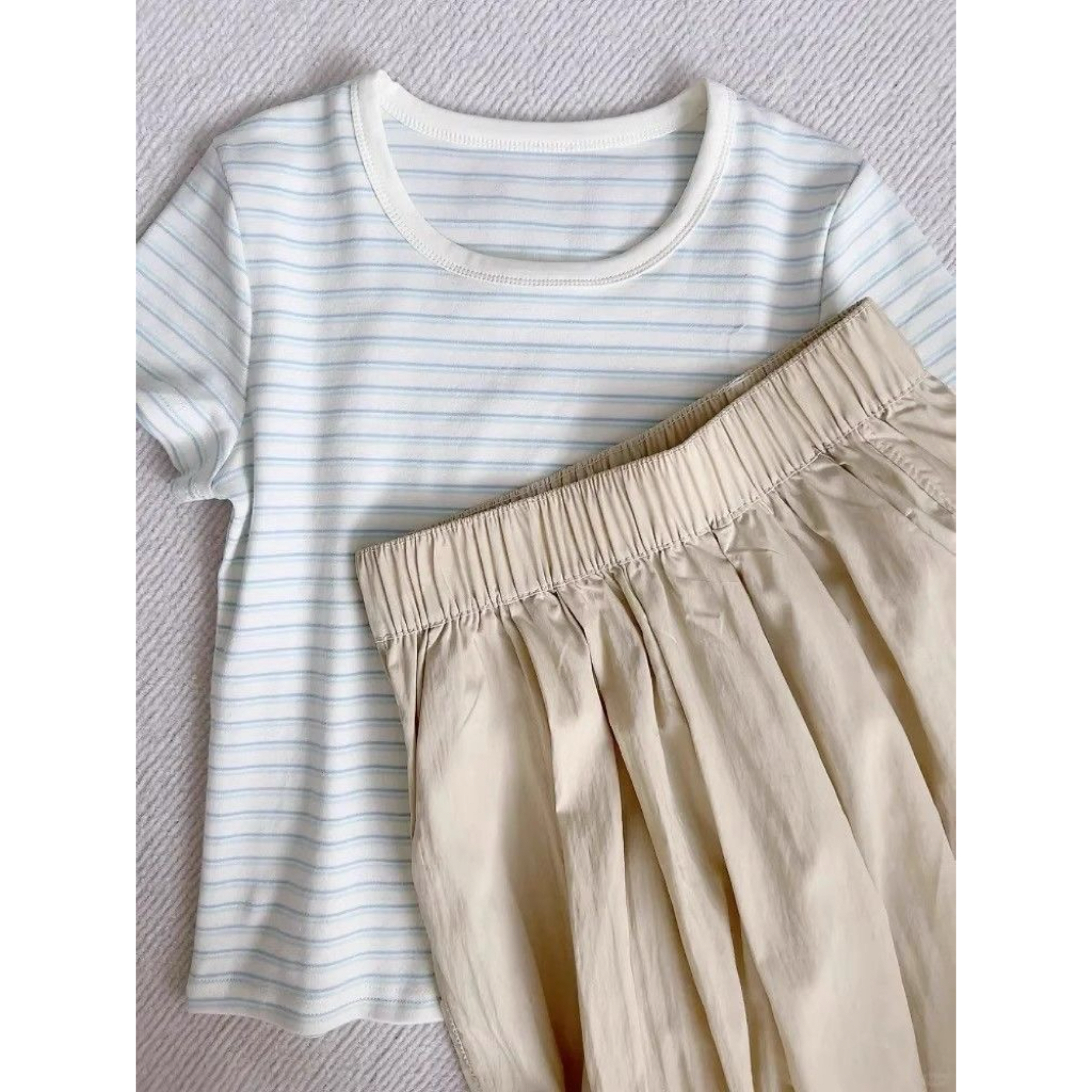 洋气减龄圆领正肩上衣女 T恤女夏季 2025新款 日系简约蓝白条纹短袖