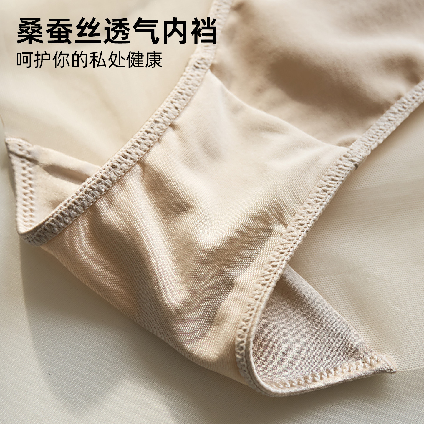 薄款 中腰性感无痕三角裤 女士丝滑缎面轻奢蕾丝2025新款 桑蚕丝内裤