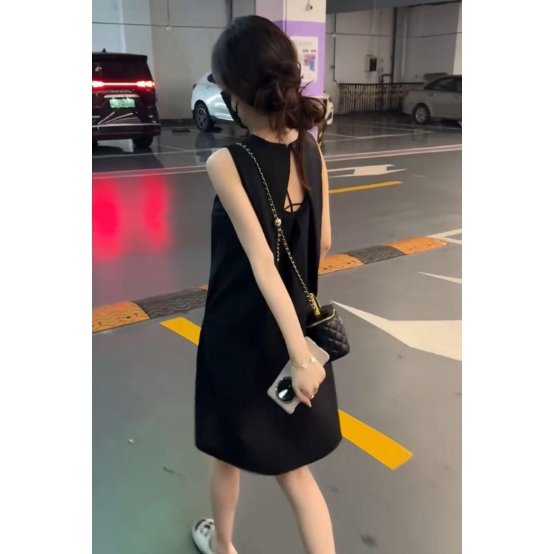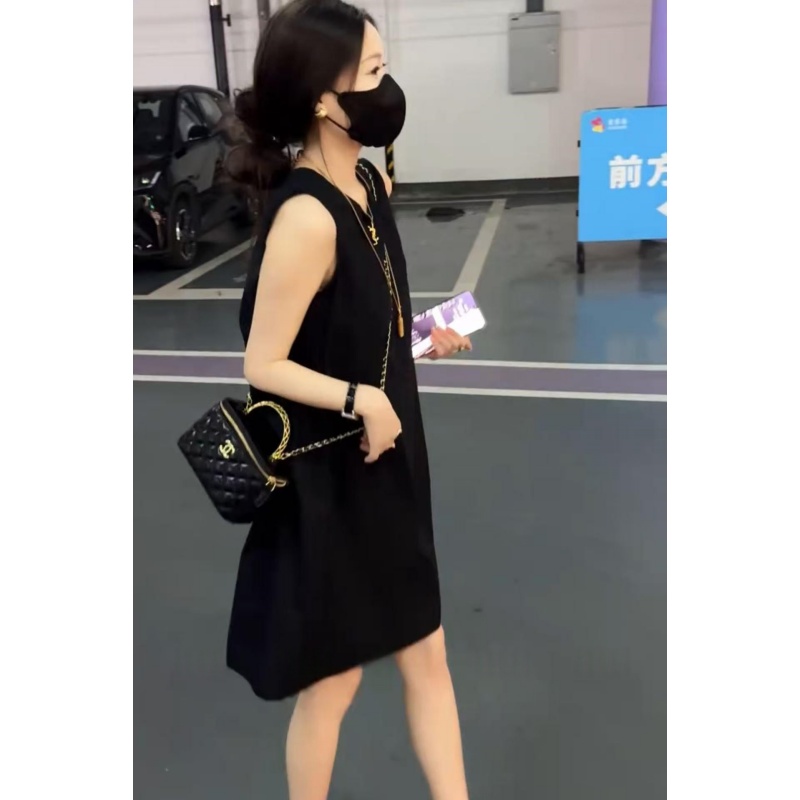 新款 秋季 高级感时尚 打底衫 背心连衣裙两件套女 大码 上衣无袖 女装