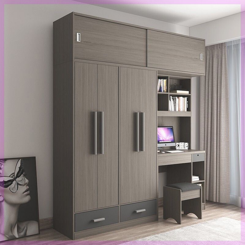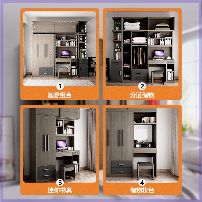 简约新款 书柜电脑桌衣柜一体连体组合带学习桌书桌小户型卧室家用