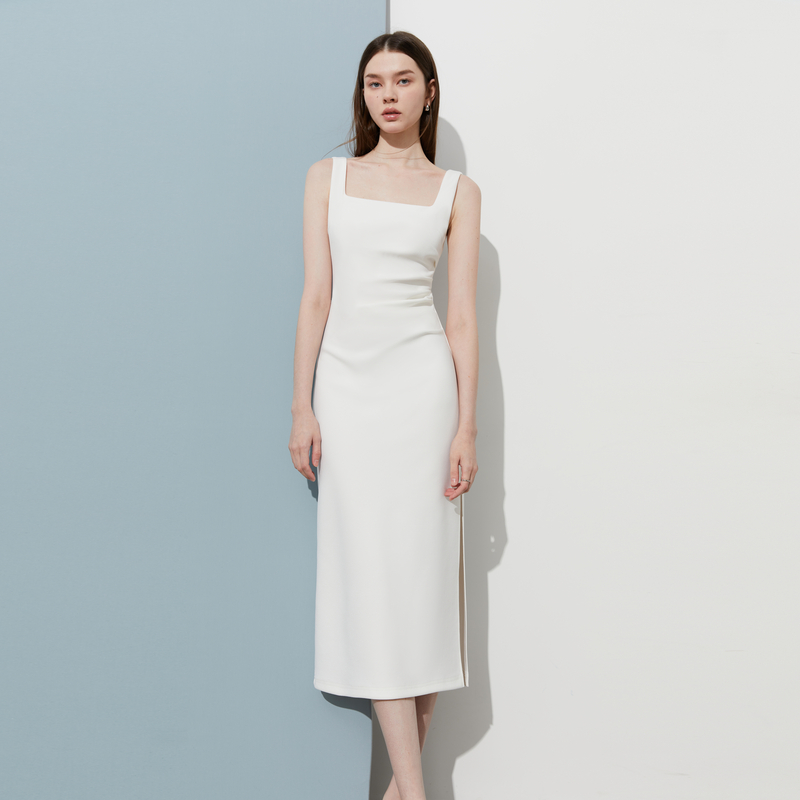 菲梦伊含羊毛白色毛呢连衣裙女秋季 轻熟高端加厚烫钻气质鱼尾裙子