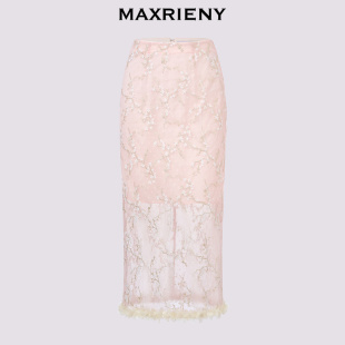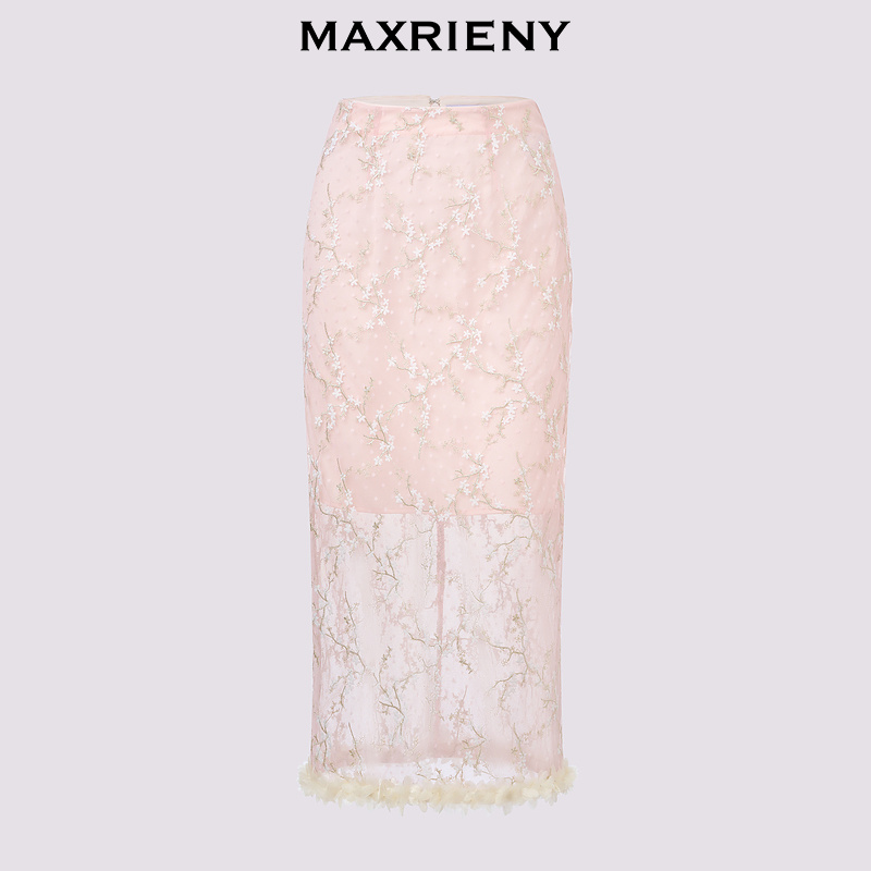 半身裙开衩蕾丝绣花包臀直筒裙 MAXRIENY新中式 奥莱