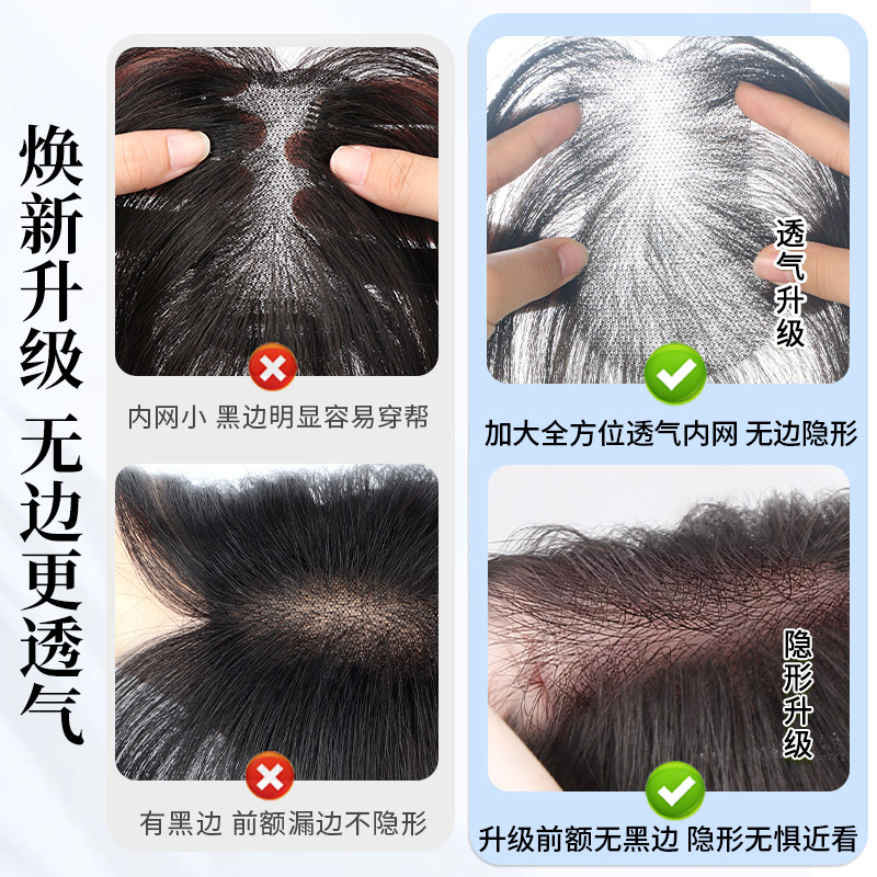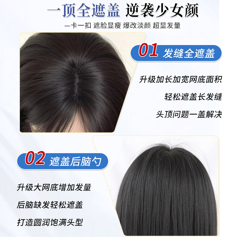 轻薄无边佳丽仟丝假发女片头顶增发量蓬松真发高颅顶刘海假发片
