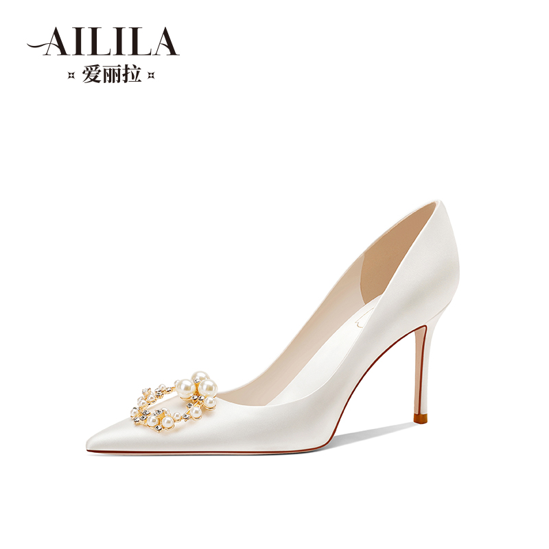 水晶新娘高跟鞋 爱丽拉绸缎白色婚鞋 法式 春季 细跟高级感 女2025新款
