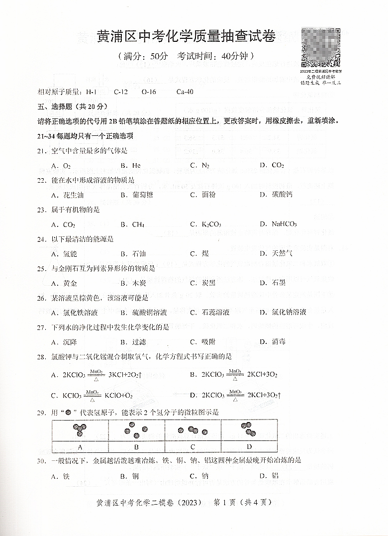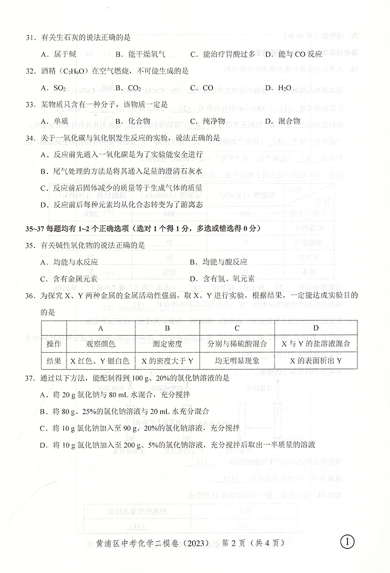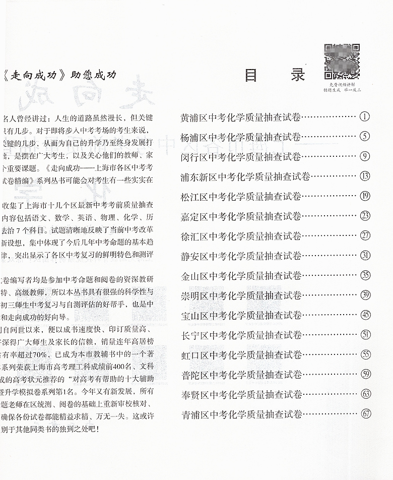走向成功 化学 上海市中考二模卷化学 2023上海市各区县中考质量抽查试卷精编 中西书局 仅试卷 2023年版