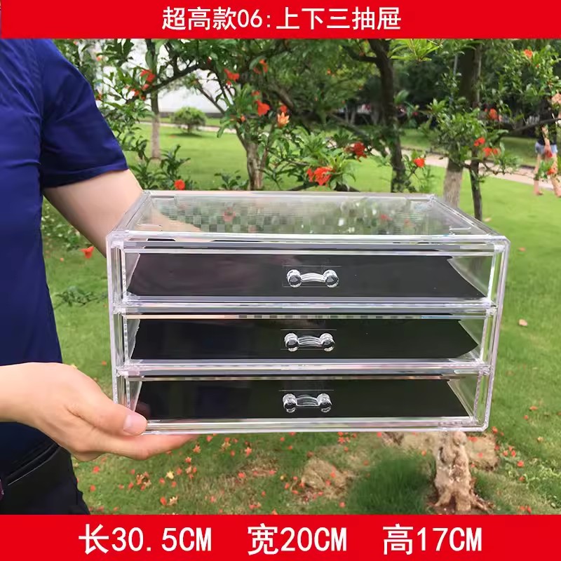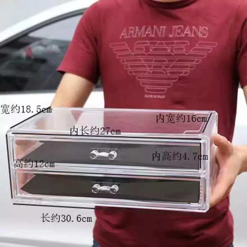 桌面透明亚克力抽屉式 收纳盒面膜护肤化妆品杂物收纳筐零食置物架