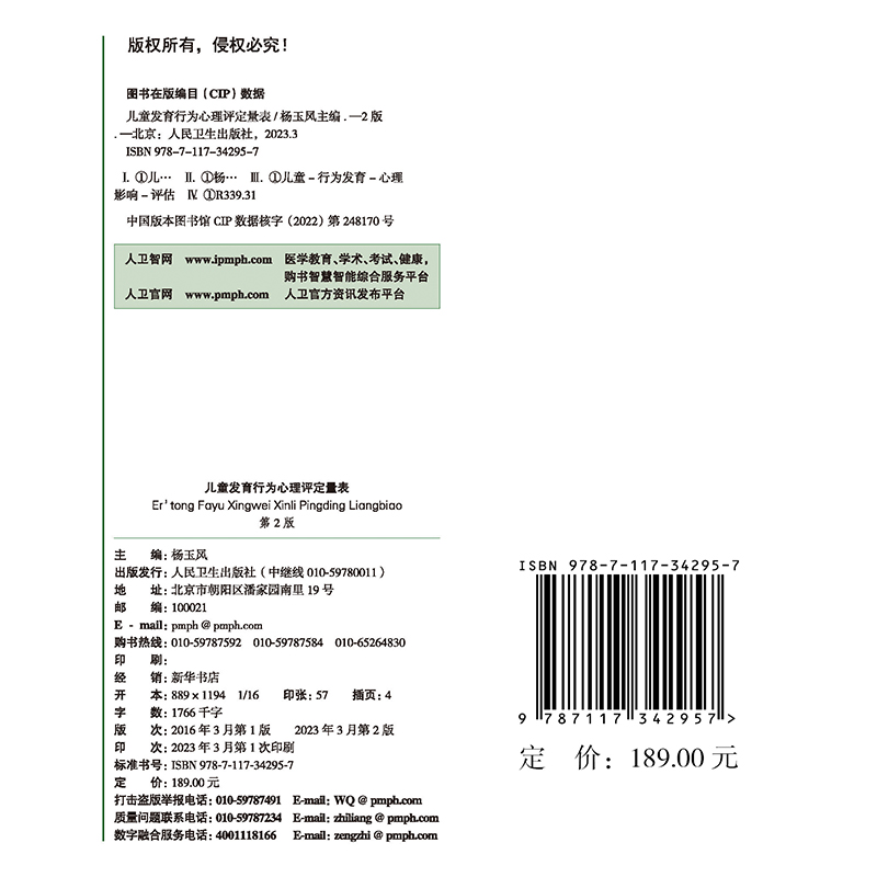 儿童发育行为心理评定量表 社 第2版 人民卫生出版 9787117342957 杨玉凤 现货正版