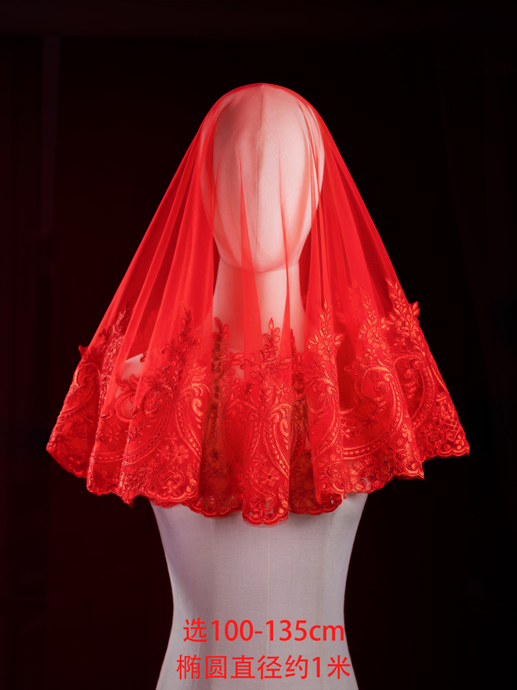 红色头纱红盖头新娘秀禾高级结婚礼拜蒙头出嫁网纱喜帕婚礼头巾女