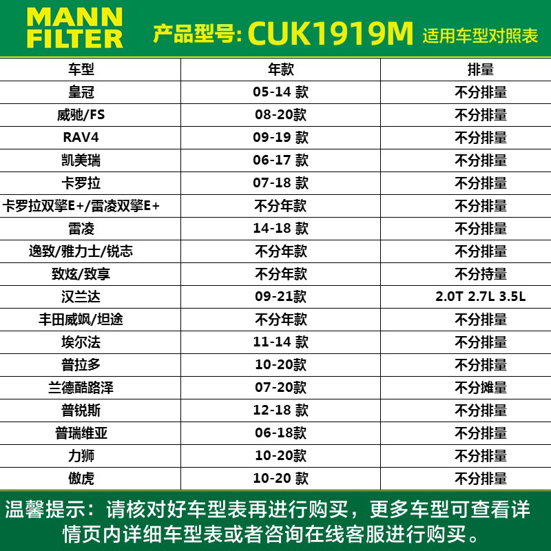 GA3S视界 19GA3 曼牌CUK19030替CUK1919M适用远景X3pro传祺GS4
