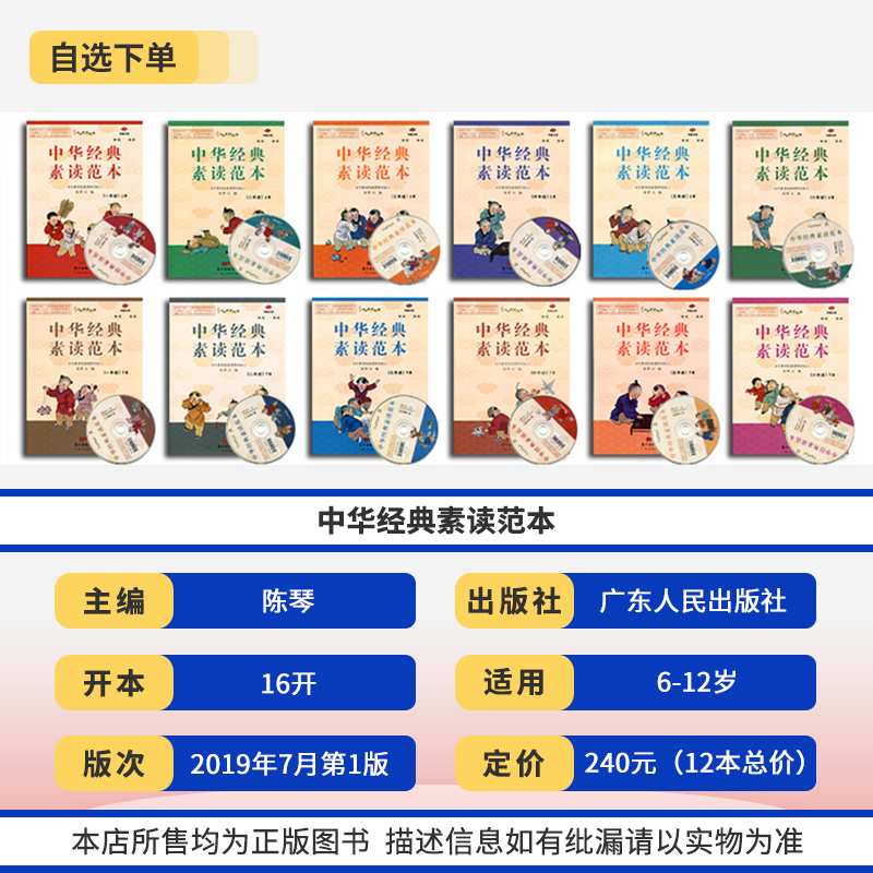 国学经典 素读范本一二三四五六年级上下册全12本 诵读本小学教材同步背诵声律启蒙陈琴主编中华素读教程诵读 中华经典 现货2023新版