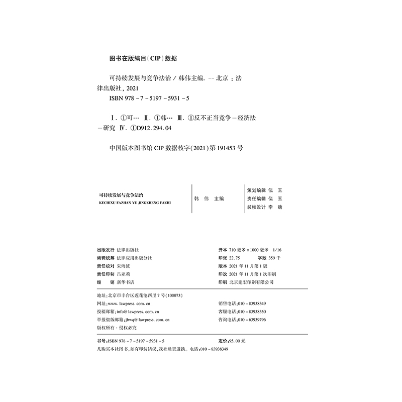 法律出版 正版 韩伟 可持续发展与竞争法治 社9787519759315 2021新书