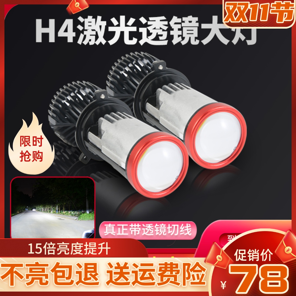 双光H4带激光透镜灯泡汽车led大灯远近一体摩托车12V 24V货车改装