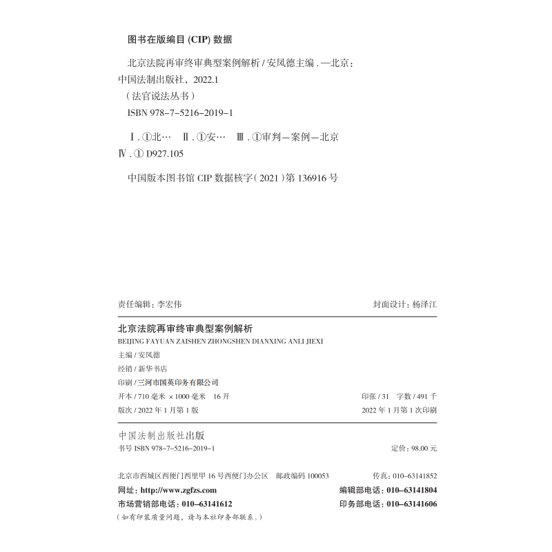 2022新书 中国法制出版 北京法院再审终审典型案例解析 法官说法丛书 社9787521620191 安凤德 正版