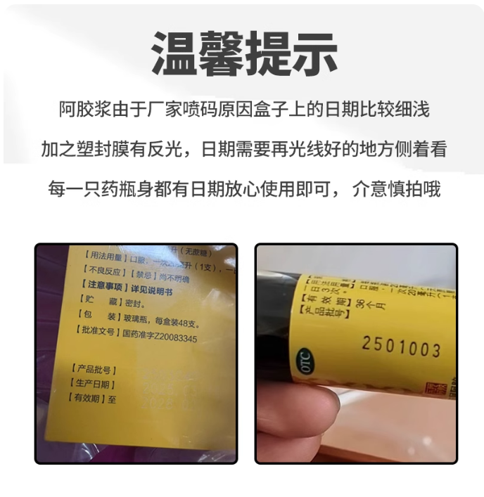 东阿阿胶复方阿胶浆无蔗糖48支补气养血气血两虚头晕目眩正品