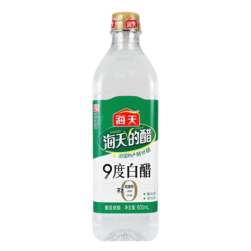 海天9度白醋800ml食用醋家用烹饪炒菜凉拌蘸料腌制泡菜香醋酿造
