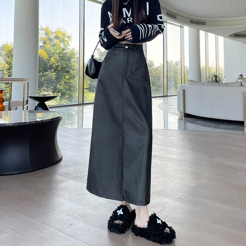 气质长款 黑色半身裙女皮裙法式 裙子长裙半裙 新款 DPLAY2025年秋季