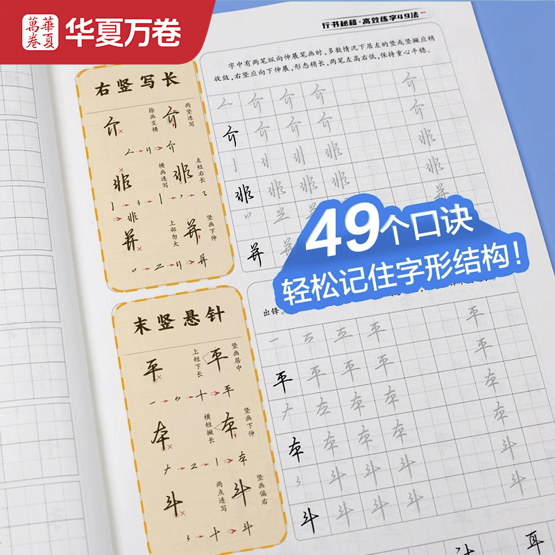行书字帖成人练字控笔训练初学者入门笔画笔顺速成教程成年男高效练字钢笔描红华夏万卷大学生初高中生专用硬笔临摹书法本志飞习字