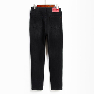 黑色加绒小脚铅笔裤 薄绒显瘦修身 女秋冬2025新款 超高腰紧身牛仔裤