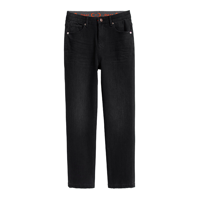 13415152 纯棉半松紧腰复古直筒牛仔裤 佐丹奴猫须牛仔裤 女秋冬新款