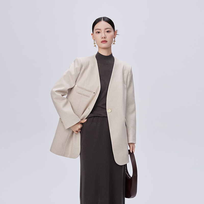 中长款 新款 鸭鸭2025年冬季 两件套米白色大衣羽绒服M 鎏金系列