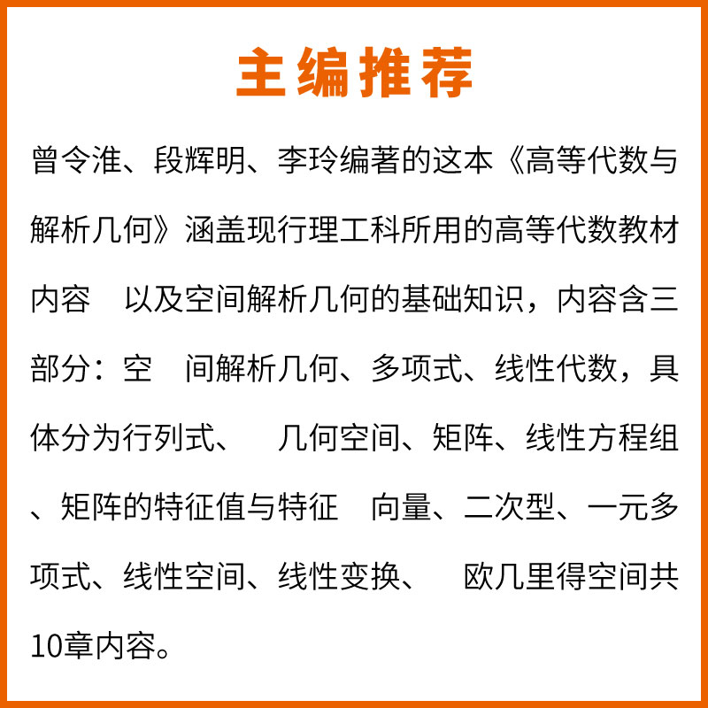 段辉明 曾令淮 李玲 清华大学出版 考研数学高等数学指导书 正版 社 高等代数与解析几何