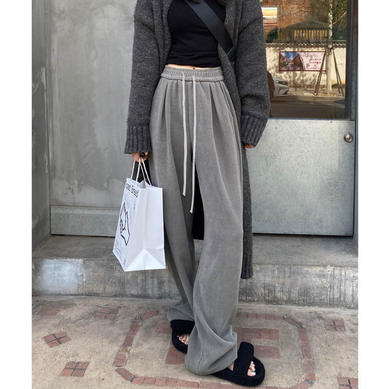 黑色阔腿裤 女秋冬加绒加厚高腰宽松慵懒针织运动休闲直筒灯芯绒裤